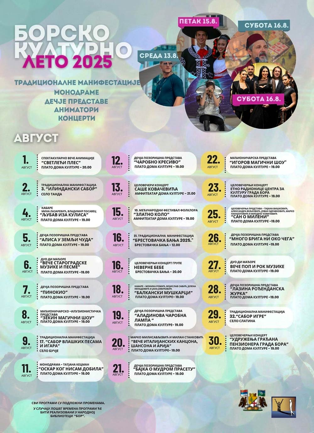 Tradicionalna manifestacija ,,Borsko kulturno leto“, biće otvorena u petak, 1. avgusta.