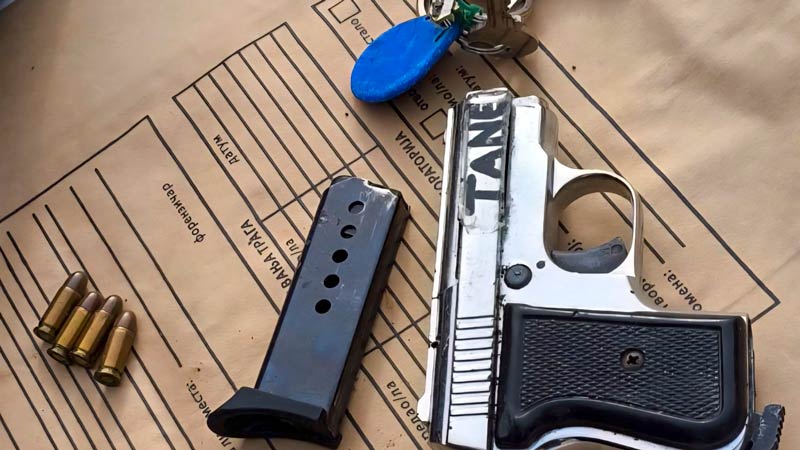 Policija je na ulici kod A. T. pronašla pištolj sa municijom, a u pretresu dva stana koja koristi u Boru, nađena je priručna laboratorija za proizvodnju metamfetamina, manja količina materije za koju se sumnja da je MDMA, hemijske supstance za pravljenje ove droge, kao i marihuana.