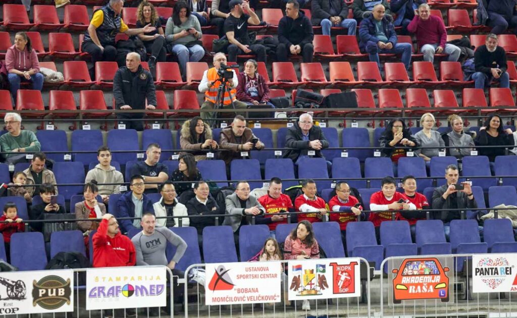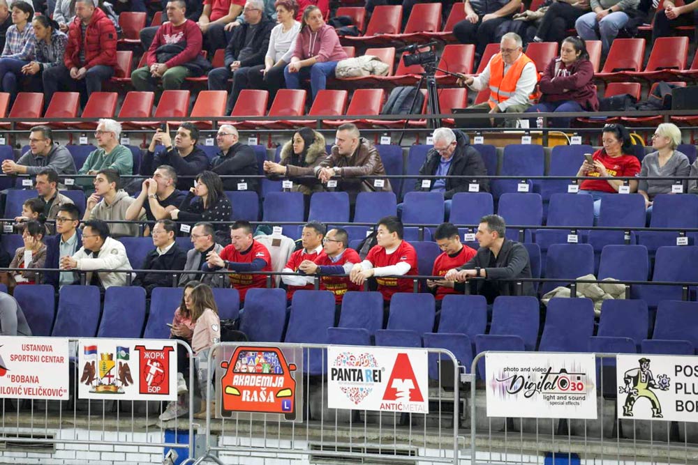 Pogledajte delove sjajne atmosfere sa sinoćnog susreta Srbije i Španije u hali Sportskog centra „Bobana Momčilović Veličković“ u Boru.