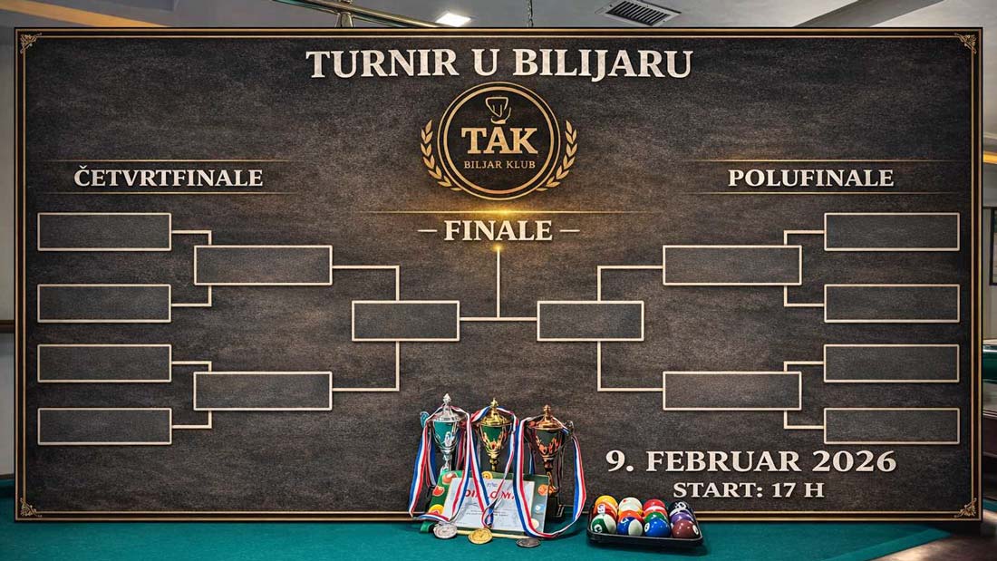 Četrdeset igrača na prvom bilijarskom turniru u Kafe bilijaru „TAK“ – ZAVRŠNICA DANAS