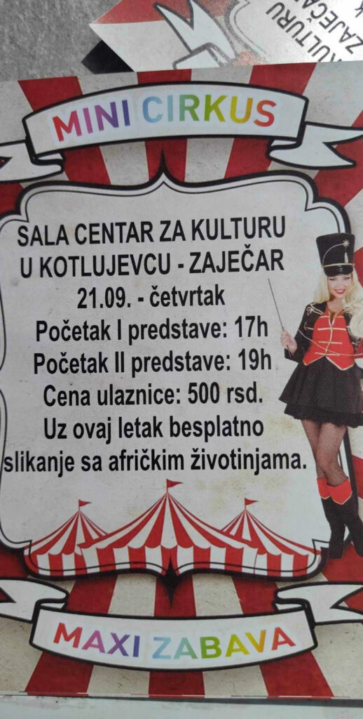 U sali Centra za kulturu u Kotlujevcu, sutra, 21. septembra, gostuje cirkus „Medžik kondor“ sa mini cirkuskim predstavama u kojima učestvuju: mađioničari, žongleri, iluzionisti, životinjice iz afričke džungle, fakiri, klovnovi …