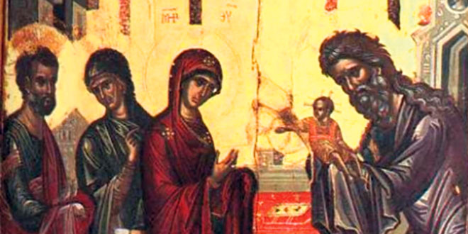 Prema crkvenoj doktrini, 40. dana po rođenju Isusa Hrista Bogorodica je otišla u hram da prinese žrtvu i tamo srela starca Simeona Bogoprimca koji je u malom Isusu prepoznao spasitelja. Taj susret malog Isusa i pravednog starca predstavlja susret boga sa svoijim narodom, odnosno crkvom, i označava hrišćanski praznik Sretenje Gospodnje, koji se proslavlja od 541 gdine.