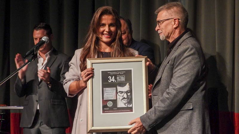 Igor je nagradu za najbolju predstavu uručio glumici Beogradskog dramskog pozorišta Tamari Šustić.