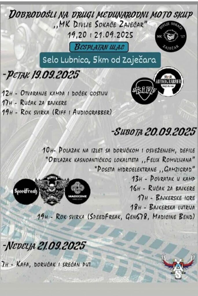 Dugi međunarodni moto skup u organizaciji Moto kluba “Divlje sokače”, biće organizovan 19, 20 i 21. septembra, u Lubnici pored Zaječara.