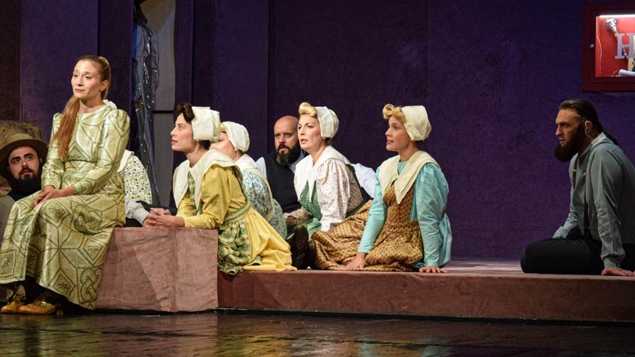 „ Zbog tog stiha sve postaje muzika. Ono što oni pevaju i ono što mi govorimo zapravo postaje muzika i olakšalo nam je jer i mi smo neka vrsta muzike zapravo i kad govorimo. Novak i ja igramo horovođe ,naši likovi se zovu horovođe i samim tim predstavlјamo arhitipove, znači žene, majke, ćerke, sestre, brata, muža i mi smo se bunili da li da postavlјamo te likove, koliko oni imaju godina i slično, a svaka vrsta racionalizacije zapravo ne dolazi u obzir. Samo muzika nosi ritam da se uhvati događaj i situacija na sceni“.