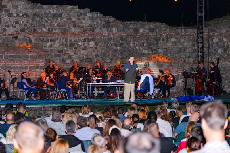 Carska palata na listi svetske kulturne baštine „Feliks Romulijana“ kod Zaječara ugostila je sinoć multmedijalnu predstavu „Paklena komedija – ispovesti serijskog ubice“, u izvođenju Džona Malkoviča, orkestra Bečke akademije i Vroclavskog baroknog orkestra, sa dirigentom Martinom Haselbekom i sopranima Čen Reiz i Suzan Langbain. Reditelj je Mihael Šturminger.