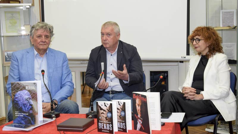 „Kao pripadnik takozvanog crnog talasa, Pavlovićevo delo „karakterišu crnilo društva, licemerje pojedinca, depresivnost moćnika, naslućivanje raspada, odbijanje da se stvarnost falsifikuje. Ta preporuka odnosi se i na roman „Bekos” Enesa Halilovića”, kazao je Latinović.