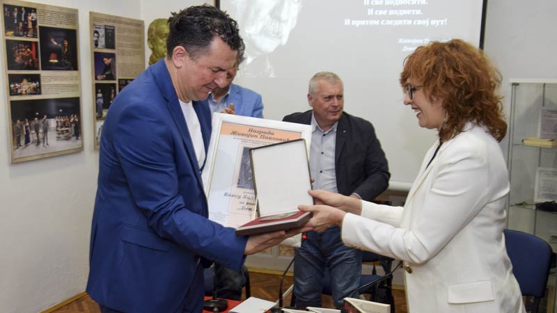 Dobitniku priznanja Enesu Haliloviću direktor Vladimir Đuričić uručio je nagradu, a Milena Pavlović bronzanu plaketu sa likom Živojina Pavlovića.