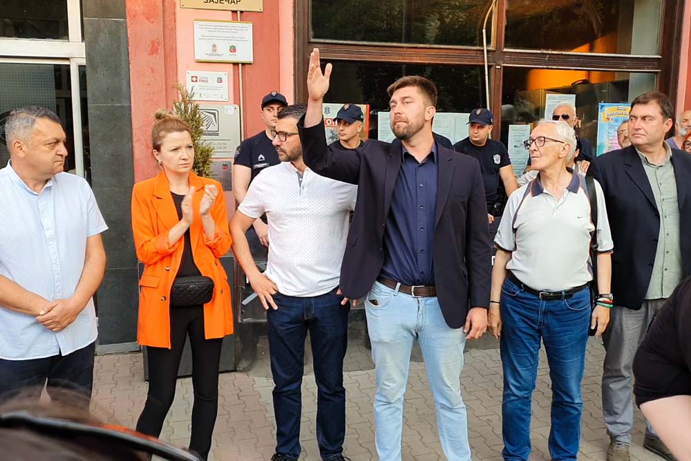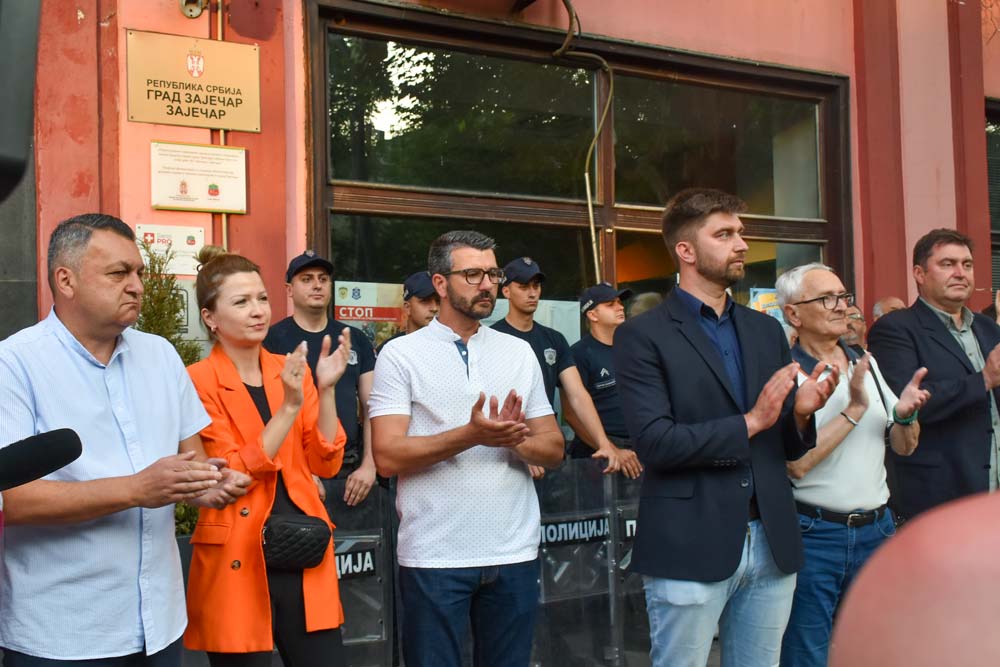 Dok se održavala pres konferencija GIK-a, ispred zgrade Gradske uprave u Zaječaru okupili su se predstavnici liste „Promena u koju verujemo“ i „Ujedinjeni za spas Zaječara“, kao i njihove pristalice kako bi izrazili nezadovoljstvo izbornim rezultatima proglašenim od strane Gradske izborne komisije i dovodeći u sumnju pobedu Srpske napredne stranke.