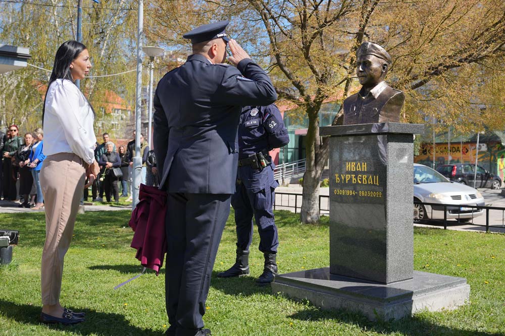 Spomen-bistu Ivanu Đurđevcu, u prisustvu pomoćnika direktora policije Vladana Radosavljevića, načelnika Uprave policije pukovnika policije Ivice Ivkovića, predstavnika Grada Zaječara i Zaječarskog okruga, predstavnika pravosudnih organa, Bezbednosno informativne agencije, predstavnika Centra za socijalni rad i obrazovnih ustanova, kolega i članova porodice, danas su otkrili Božidar i Nevena, otac i sestra tragično stradalog policajca.