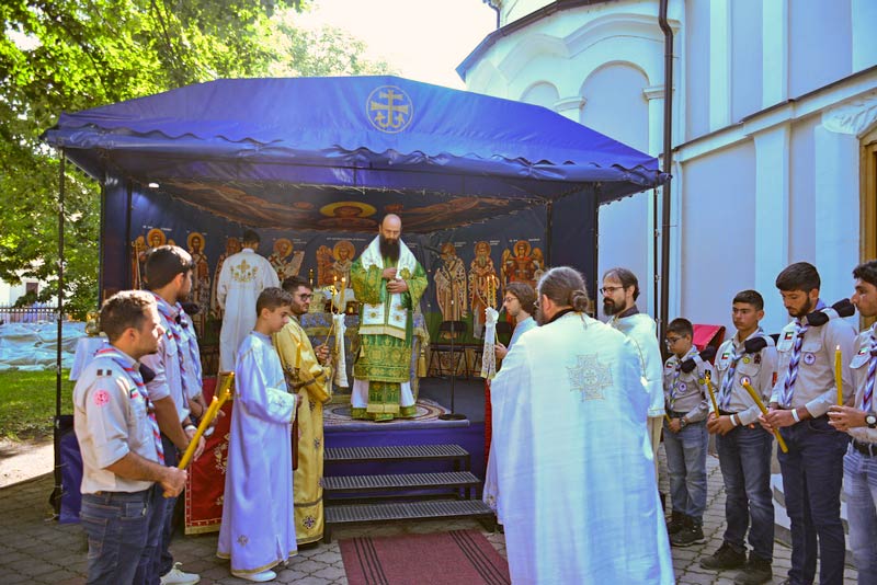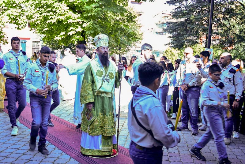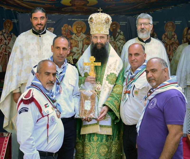 Liturgijsko slavlje bilo je posebno svečano budući da su na malom i velikom vhodu čtecirali izviđači iz hrišćanske pravoslavne zajednice Palestine, Kuvajta i Sirije. Takođe, “Simvol vere“ čitan je na srpskom i arapskom jeziku, dok je „Oče naš“ čitan na srpskom, arapskom i rumunskom jeziku.