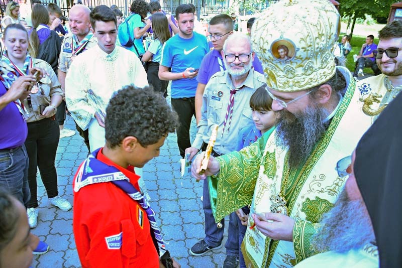 Poštovani i dragi učesnici 11. smotre Saveza izviđača Srbije, dragi gosti i izviđači iz Palestine, Sirije, Egipta, Izraela, Rumunije, Republike Srpske, Crne Gore i Srbije, poštovani organizatori i pokrovitelji, dragi i verni narode srpski, svetosavski i Pravoslavni: Današnji Apostol nam donosi pouku: „Ne budite nikome ništa dužni, osim da ljubite jedni druge, jer ko ljubi drugoga, ispunio je zakon“ (Rim. 13, 8). Ova apostolska zapovest, kao i mnoge druge, jesu upravo posvedočeno Jevanđelje i približene ka vernom narodu reči samoga Gospoda našega Isusa Hrista.