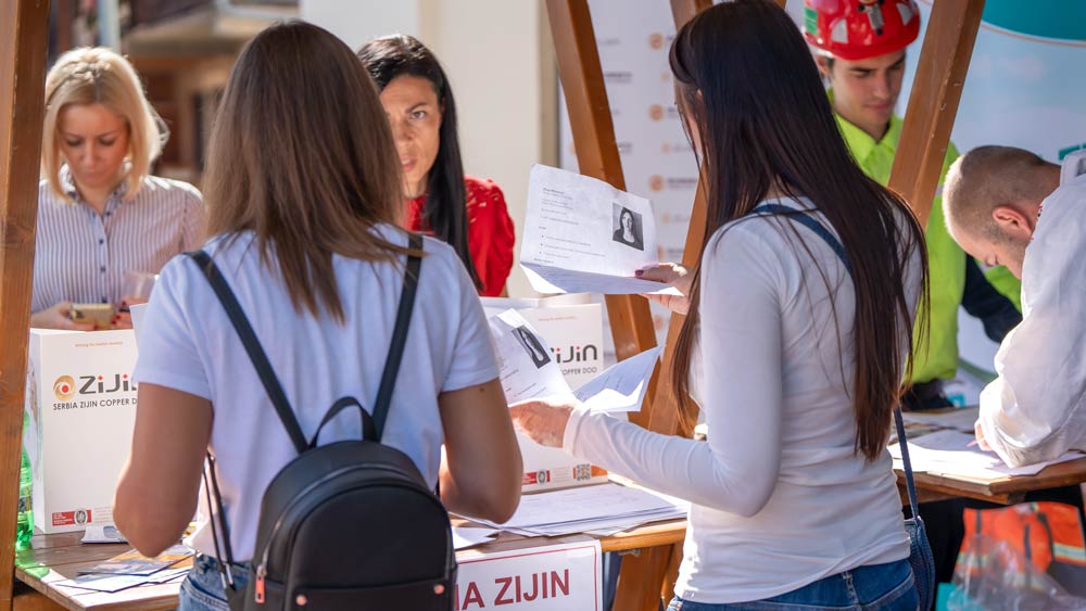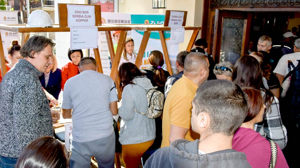 Nadležni u Sektoru ljudskih resursa u ovoj kompaniji kažu da traže radnike za poslove mašinskog i elektroodržavanja u Boru, ali da je u planu zapošljavanje i više od 50 bravara, varioca, mehaničara, električara i automatičara. Inače, kako navode u ovoj kompaniji, za nepunih šest godina posao u Srbija Ziđin Kopper dobilo je 3.100 radnika, najviše onih iz Bora, Majdanpeka i okolnih sela, ali ih ima dosta i iz Zaječara, Negotina, Kladova, Knjaževca, Boljevca, Požarevca, Donjeg Milanovca, Smedereva, Pančeva i Beograda. Prosečna neto plata u Srbija Ziđin Kopper vredi 144.000 dinara, te je verovatno to bio jedan od razloga što je baš štand ove kompanije danas bio među onima koji su privukli najviše zainteresovanih.