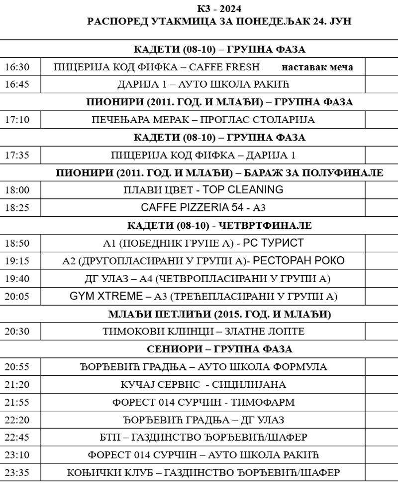 K3: DANAS ČETVRTFINALNE UTAKMICE KADETA I PIONIRA