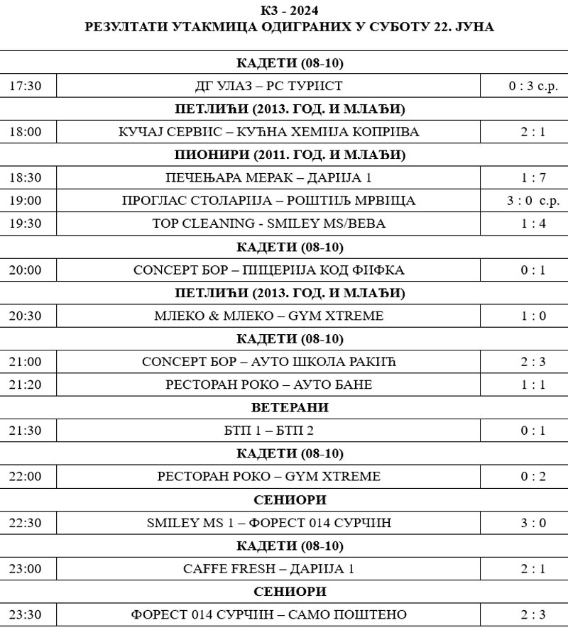 Primećena je velika borba na terenu, entuzijazam ekipa, što i ne čudi jer turnir polako ulazi u drugu nedelju. Danas se igraju četvrtfinalne utakmice u kategoriji kadeta i pionira, dok je finalni dan za spomenute kategorije ekipa, zakazan za sredu.