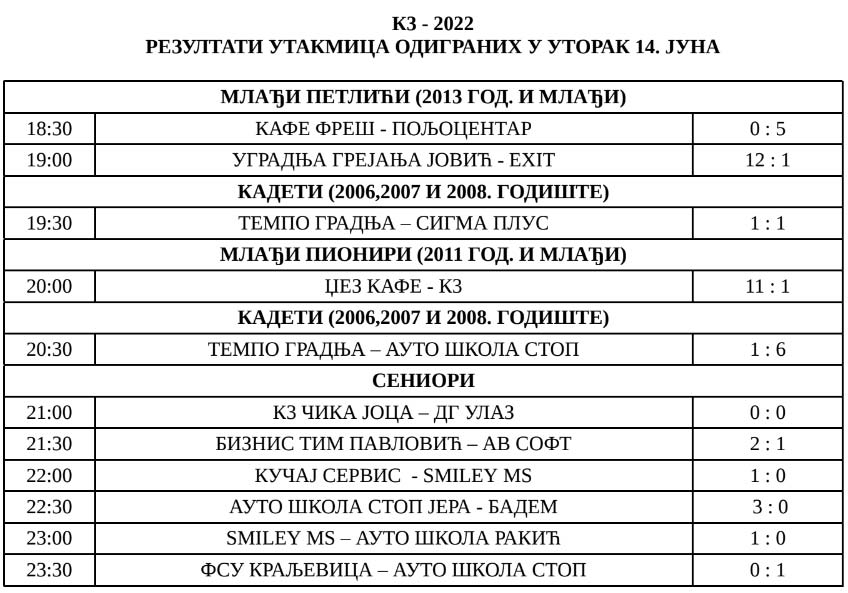 Evo rezultata odigranih utakmica: