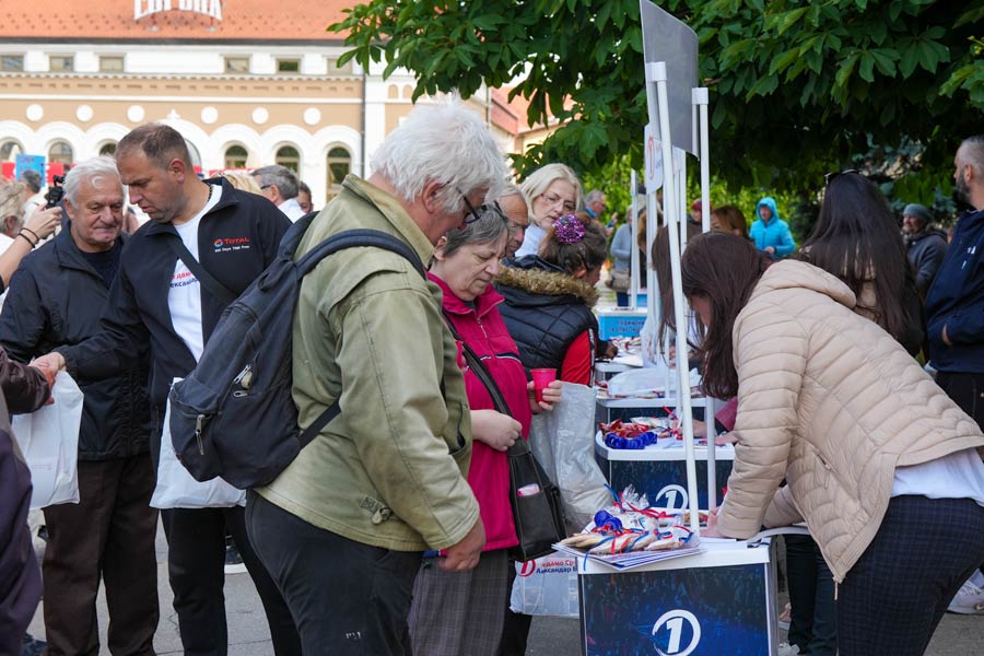 Dok je Videnović razgovarao sa građanima, aktivisti i članovi Srpske napredne stranke su im delili prigodne promotivne poklon paketiće, hemijske, upaljače…