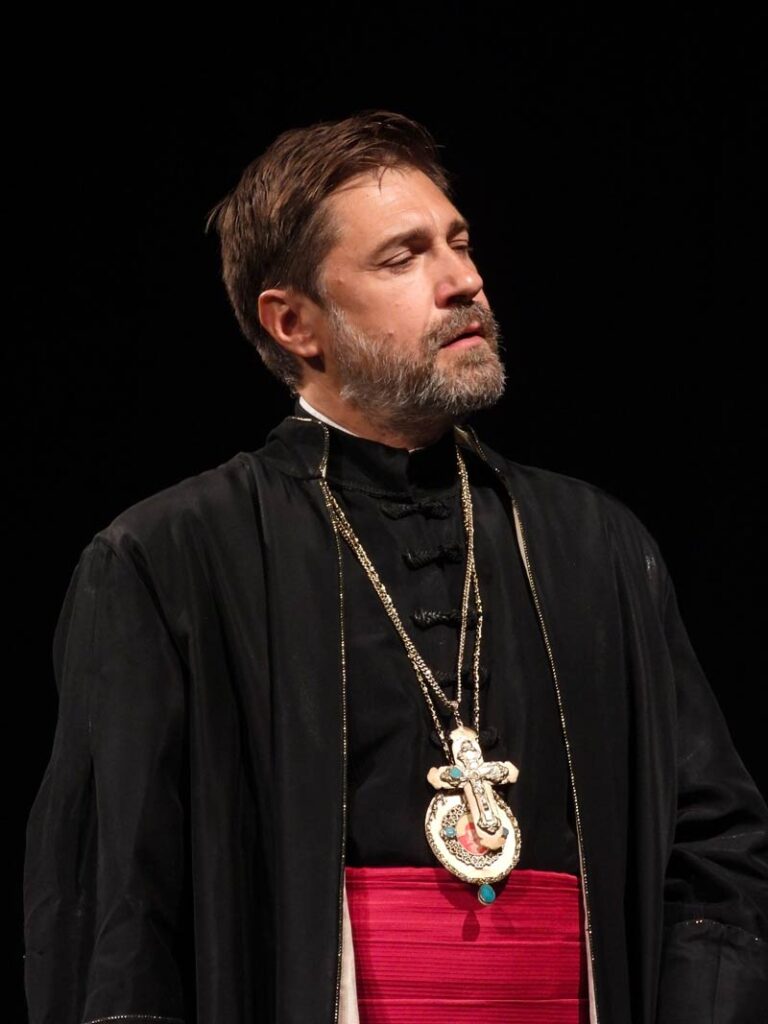 „Činjenica da je obnovljenu kapelu na Lovćenu dvadesetih godina prošlog veka oslikao upravo Uroš Predić, poslužila je autorki teksta da spoji ovog slikara i mitropolita Mitrofana Bana. Istorijske pozicije Predića nisu takve, one su izmaštane za potrebe ovog dijalogaˮ, istakao je glumac Bojan Žirović, govoreći o liku koji tumači u predstavi.