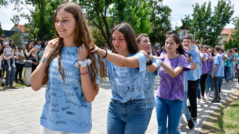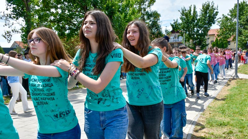 „Deca su ideju neverovatno lepo prihvatila, a onda sam ja uključila nastavnike fizičkog koji su sa učenicima krenuli da rade korake za ples. Trebalo nam je jedno mesec i po dana, prvo su nastavnici radili sa svojim odeljenjima, a onda je trebalo vremena da se sve to zajedno ukomponuje“, kaže direktorka Suzana Krstić uz obećanje da će ovakva manifestacija za kraj školovanja osmaka postati tradicija u školi „Hajduk Veljko“.