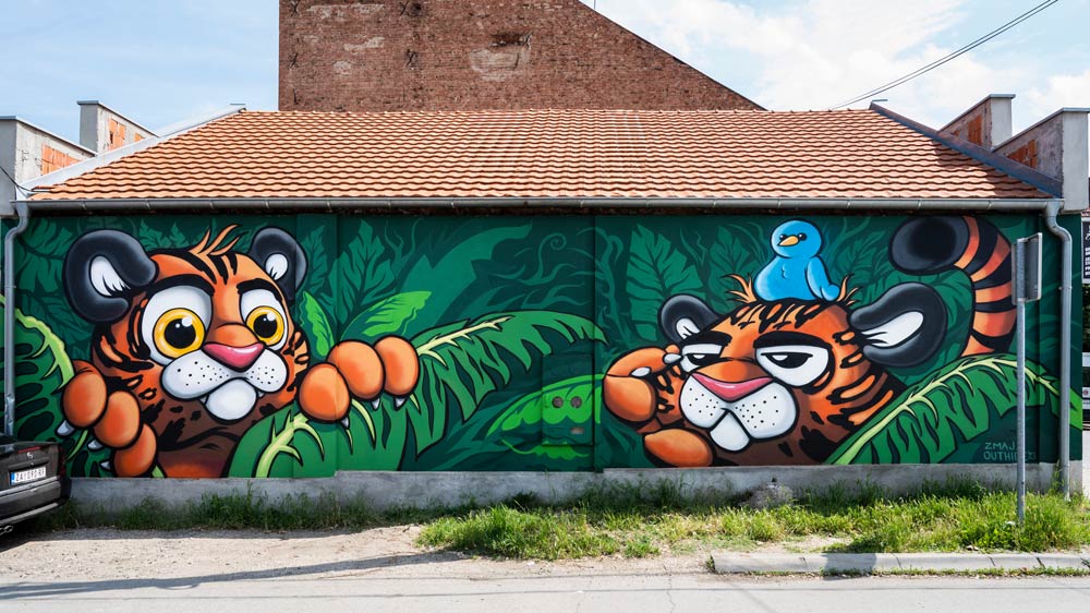 Zmaja je u Zaječaru oslikala samostalni mural Hide and seek, sa tematikom egzotike – pejzaža u džungli, u kom je neizostavan naravno tigar.