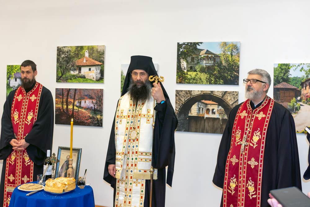 Izložba je priređena uz blagoslov mitropolita Ilariona, koji je obavio i rezanje slavskog kolača.