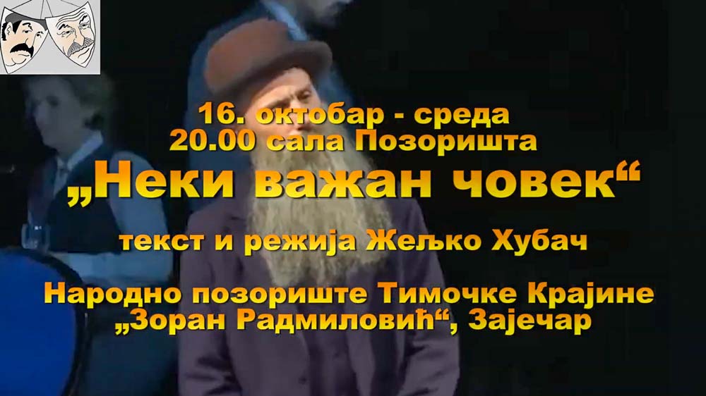 Premijera predstave „Neki važan čovek“ o životu Nikole Pašića (Zaječar, 1845. – Beograd, 1926.), koji je bio dugogodišnji predsednik vlade Kraljevine Srbije i Kraljevine SHS, osnivač i vođa Narodne radikalne stranke, autora Željka Hubača biće izvedena u sredu uveče, 16. oktobra od 20 sati na sceni Narodnog pozorišta Timočke Krajine „Zoran Radmilović” u Zaječar. Praizvedbom ove drame ujedno će biti svečano otvoreno ovogodišnje, 33. izdanje festivala „Dani Zorana Radmilovića“.