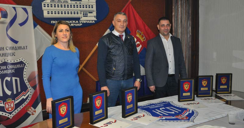 Aktivisti Nezavisnog sindikata policije Koordinacionog centra Zaječar, uručili su plakete i skromne poklone svojim kolegama: Slavoljuvu Baljeviću, koji je stekao uslov i pravo za odlazak u penziju sa radnog mesta vođa sektora u Policijskoj ispostavi u Zaječaru, Radisavu Milojevu, koji je stekao uslov i pravo za odlazak u penziju sa radnog mesta policijski službenik u Policijskoj ispostavi u Zaječaru, Zdenku Kostiću koji stekao uslov i pravo za odlazak u penziju sa radnog mesta saobraćajni policajac u Policijskoj stanici u Knjaževcu, Slavici Živković koja je stekla uslov i pravo za odlazaka u penziju obavljajući poslove u Odseku za logistiku Policijske uprave Zaječar, Dragani Živanović koja je stekla uslov i pravo za odlazak u penziju obavljajući poslove u restoranu Policijske uprave u Zaječaru.
