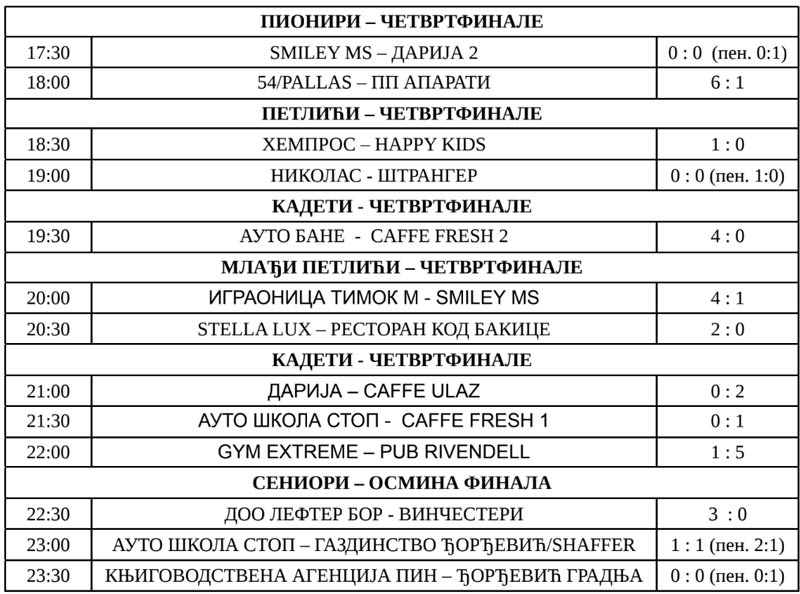 11. dana turnira u malom fudbalu „Joca Mihailović“, u zaječarskom naselju Ključ 3, odigrane su utakmice četvrtfinala i osmine finala u kategorijama pionira, petlića, kadeta, mlađih petlića i seniora.