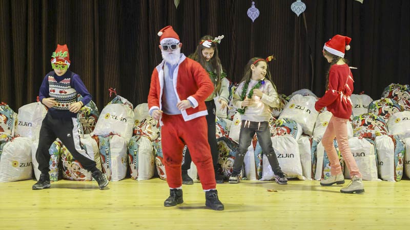 Nekoliko dana ranije zajedno su okitili novogodišnji bor koji im je darivala kompanija, a ovoga puta đaci su se revanširali novogodišnjom priredbom.