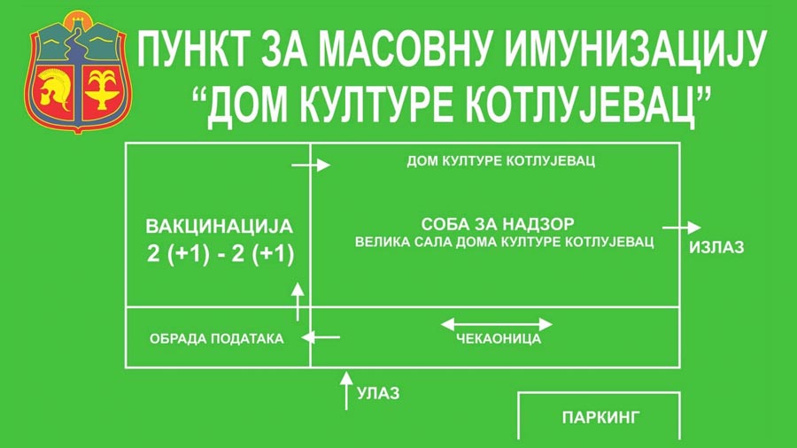 Imunizacija će se obavljati u Domu kulture u Kotlujevcu i u prostorijama Crvenog krsta u naselju Kraljevica u vremenu od 08.00 do 18.00 sati.