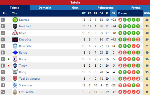 Rezultati 13. kola: FAP Livnica – Timok 0:3, Loznica – Dubočica 3:1, Borac – Novi Sad 1:3, Užice – Srem 3:0, Bečej – Bavanište 3:0, Toplički vitezovi – Banat 0:3.