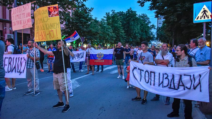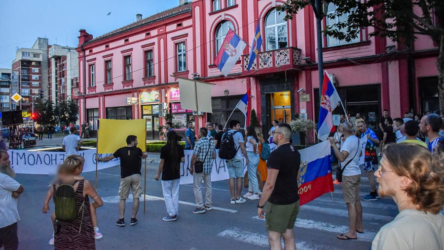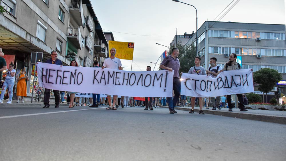 Na početku kolone građani su nosili veliki transparent na kome je pisalo „Nećemo kamenolom“, istaknute su i poruke: „Nedamo Kraljevicu“ i „Stop izdaji“, a pored srpske, učesnici protesta istakli su i zastavu Rusije sa grbom.
