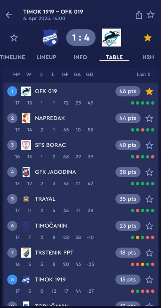 Na samom vrhu tabele nalaze se i petlići OFK 019 – trenutno su četvrti, sa samo tri boda manje od prvoplasirane ekipe.