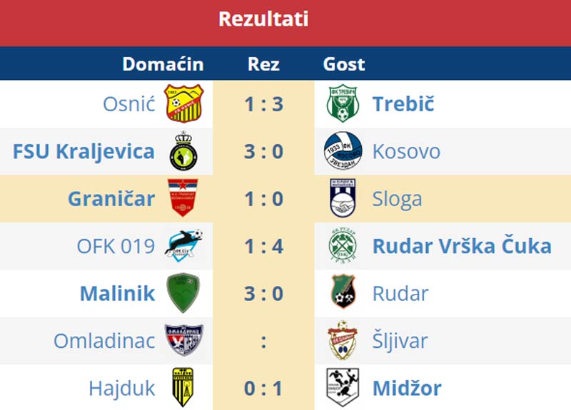 Evo i kompletnih rezultata utakmica 14. kola Zaječarske okružne lige: