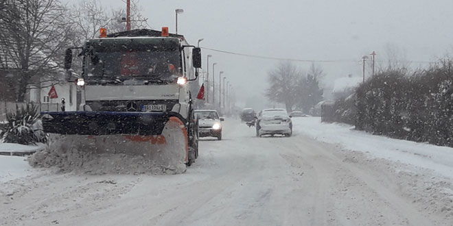 Na putevima I prioriteta ima do 5cm snega, dok na kolovozima na putevima II i III prioriteta ima 5-10cm snega.