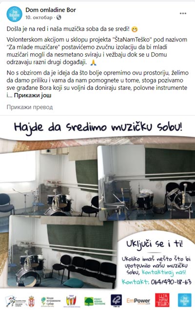 Ovaj medijski sadržaj objavljen je u okviru projekta fokusiranog na mlade u Boru i unapređenje odnosa mladih prema društvenoj zajednici. Projekat „Mladi kroje budućnost Bora“, sufinansiran je iz budžeta Grada Bora. Stavovi izneti u podržanom medijskom projektu nužno ne izražavaju stavove organa koji je dodelio sredstva.