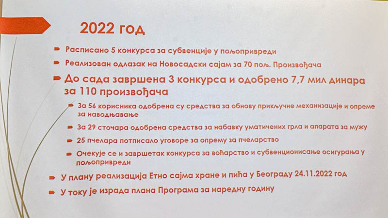 „Povratak poljoprivrede na stare grane koje su krasile ovaj kraj će ići nešto sporije nego što smo mi očekivali ali ćemo se svakako truditi da svake godine što više vas okupimo ovde, i da probamo da omogućimo što veća sredstva za podsticaje i za razvoj svih grana poljoprivrede“, rekao je Videnović.