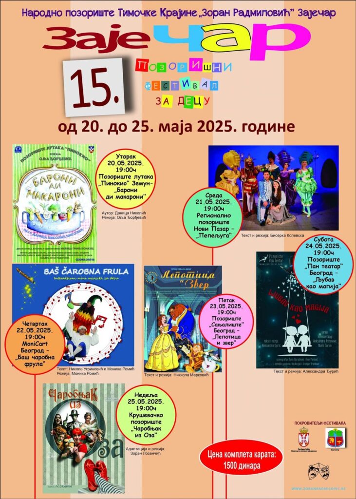 Pozorišni festival za decu ,,ZajeČAR“, 15. po redu, biće održan od 20. do 25. maja, u zaječarskom teatru.