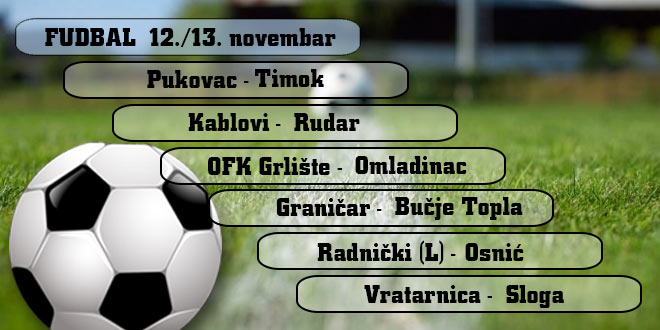 Kablovi će u nedelju, 13. novembra na svom terenu dočekati Rudar iz Grljana, dok će se OFK Grlište sastati sa ekipom Omladinca iz Grezne. Takodje na svom terenu Graničar iz Velikog Izvora ugostiće ekipu Bučja, Radnički iz Lubnice igra protiv Osnića, dok će fudbaleri Vratarnice gostovati ekipi Sloge u Minićevu.