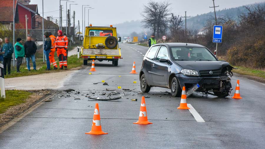 Danas nešto pre 12.00 sati, došlo je do sudara automobila marke „Fiat Punto“ i „Lančija“. Tom prilikom lakše povrede zadobila je žena koja se nalazila u „Lančiji“.