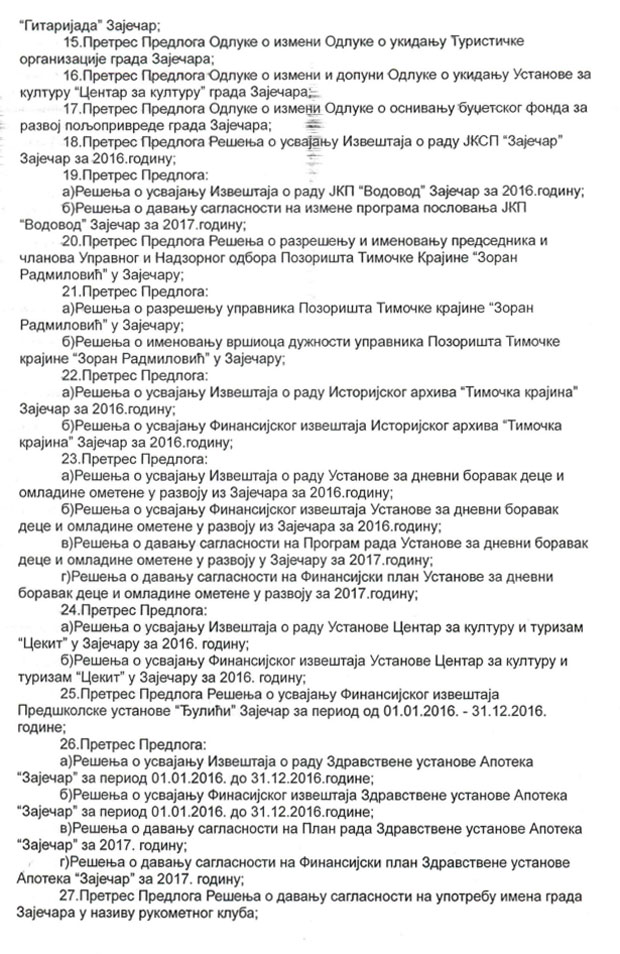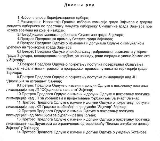 Evo i kompletnog dnevnog reda: