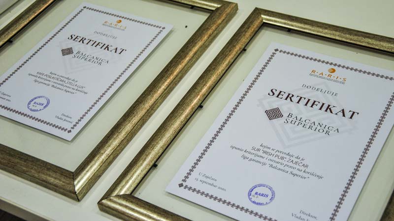 Na ceremoniji u Zaječaru, u četvrtak 18. februara, predstavnicima Kafe-poslastičarnice “Stella Lux” i Irish Pub-a “Rivendell” uručeni su sertifikati “Balcanica Superior”.