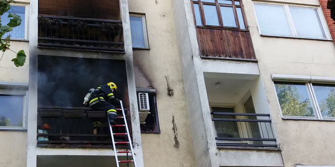 Uprkos brzoj reakciji vatrogasaca juče je u naselju Kraljevica u potpunosti izgoreo stan na drugom spratu zgrade B3, a iz buktinje su izneti teško povređena žena i njen pas.