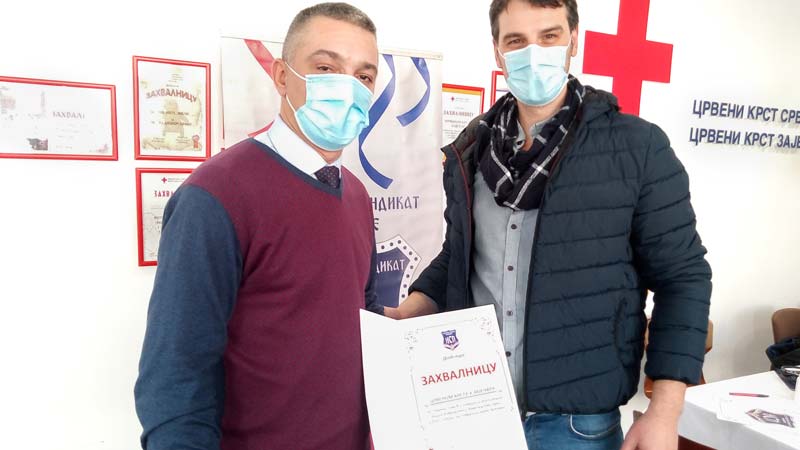 Inače, Crveni krst Zaječara već duži niz godina unazad ima odličnu saradnju sa Nezavisnom sindikatom policije, pa im je za tu saradnju uručena i zahvalnica.