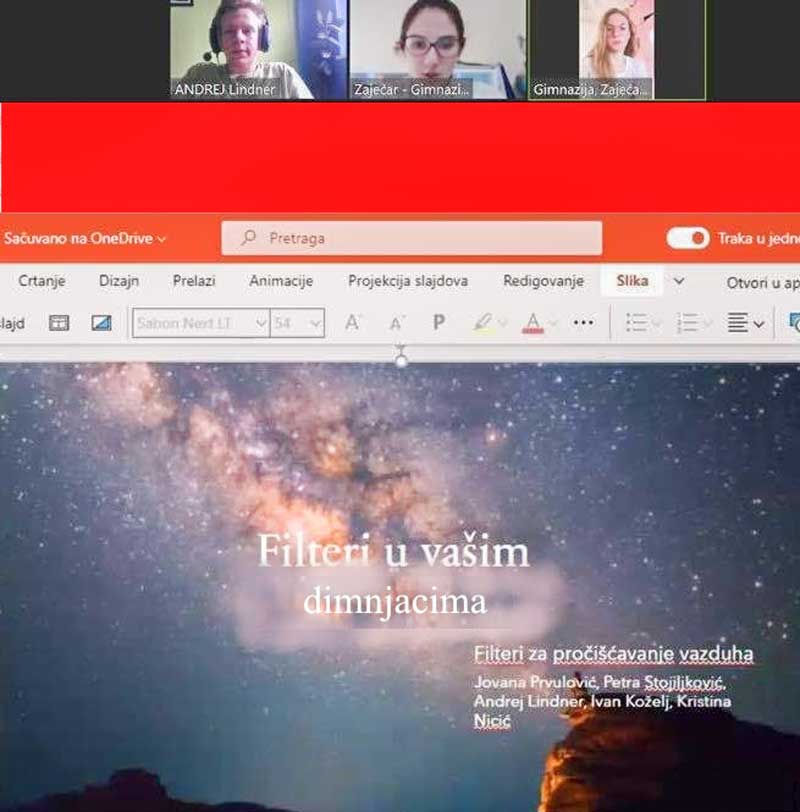 Tim visokoplasiranih zaječarskih gimnazijalaca čine Jovana Prvulović (III3), Andrej Lindner (III3), Kristina Nicić (III3), Petra Stojiljković (II3) i Ivan Koželj (III2). Pred njima je bio izazov rešavanja problema zagađenja vazduha u Zaječaru tokom zime. Mentor ekipe je Mladen Šljivović, nastavnik fizike.