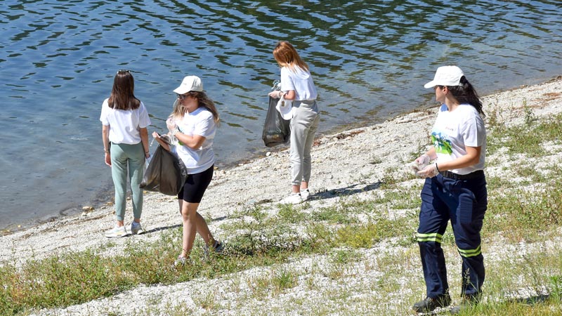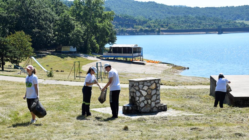 Podeljeni u tri grupe, đaci-volonteri sakupili su sav otpad na putu ka kampu i brani, na glavnoj plaži i u okolini hotela “Jezero”.