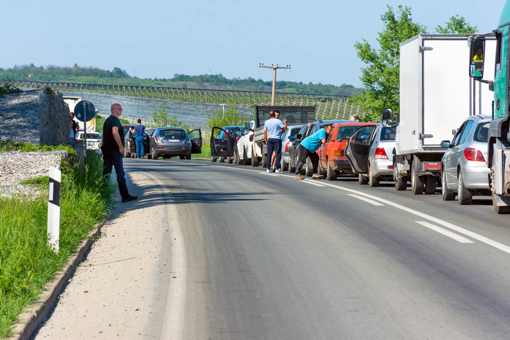 Saobraćaj se na deonici puta kod asfaltne baze odvija naizmeničnim propuštanjem vozila.