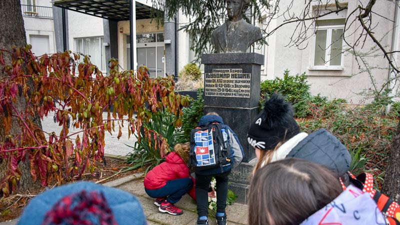 Obeležavanje Dana škole „Ljuba Nešić“ započelo je polaganjem venaca ispred biste narodnog heroja Ljube Nešića. Vence su položili učenici četvrtog razreda, u pratnji svojih učitelja i direktora škole.