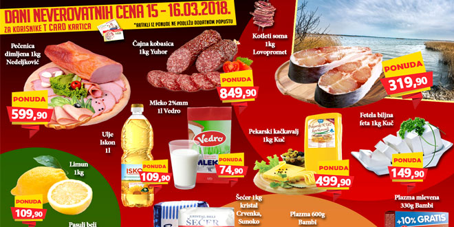 Za više od 30 najatraktivnijih proizvoda važe super cene a pored ove ponude u toku je i nedeljna akcija sa više od 200 proizvoda koji se nalaze na dodatnom sniženju. Neverovatne cene su u objektima odštampane na crvenom, dok je ostatak akcijskih cena odštampan na žutom papiru.