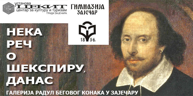 U okviru obeležavanja 180 godina zaječarske Gimnazije, u galeriji Radul begovogog konaka večeras će biti priredjen program pod anazivom “Neka reč o Šekspiru, danas”.
